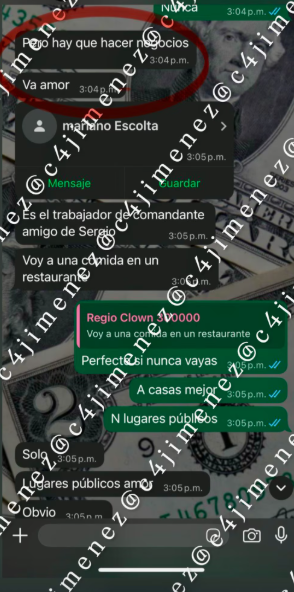El 16 de septiembre, tras concluir una sesión en el gimnasio Smart Fit de Polanco, Regio Clown mantuvo una conversación con su pareja. En WhatsApp, notificó que asistiría a una comida con varias personas, incluyendo a alguien apodado “el comandante” y un tal Mariano, conocido de un amigo llamado Sergio.